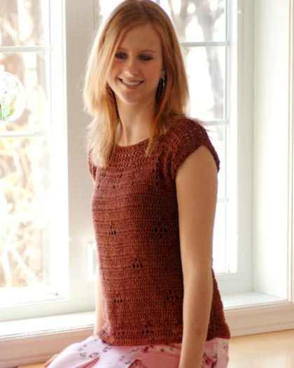 This is a very neat and feminine looking top which crochets up quickly and easily following a filet crochet chart.