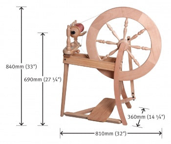 Ball bearings and large 56cm (22ins) wheel makes treadling smooth and effortless and easy to maintain a steady speed. The wide legs give good stability especially when speed spinning. The treadle is pivoted to allow a comfortable heel-toe action. Lazy Kate and 4 bobbins included. The many optional accessories make this an extremely versatile wheel.