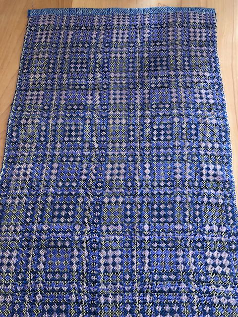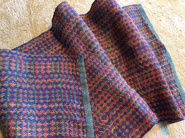 Sett: 32 epi (sleyed 4/dent in an 8-dent reed); 26 ppi pattern