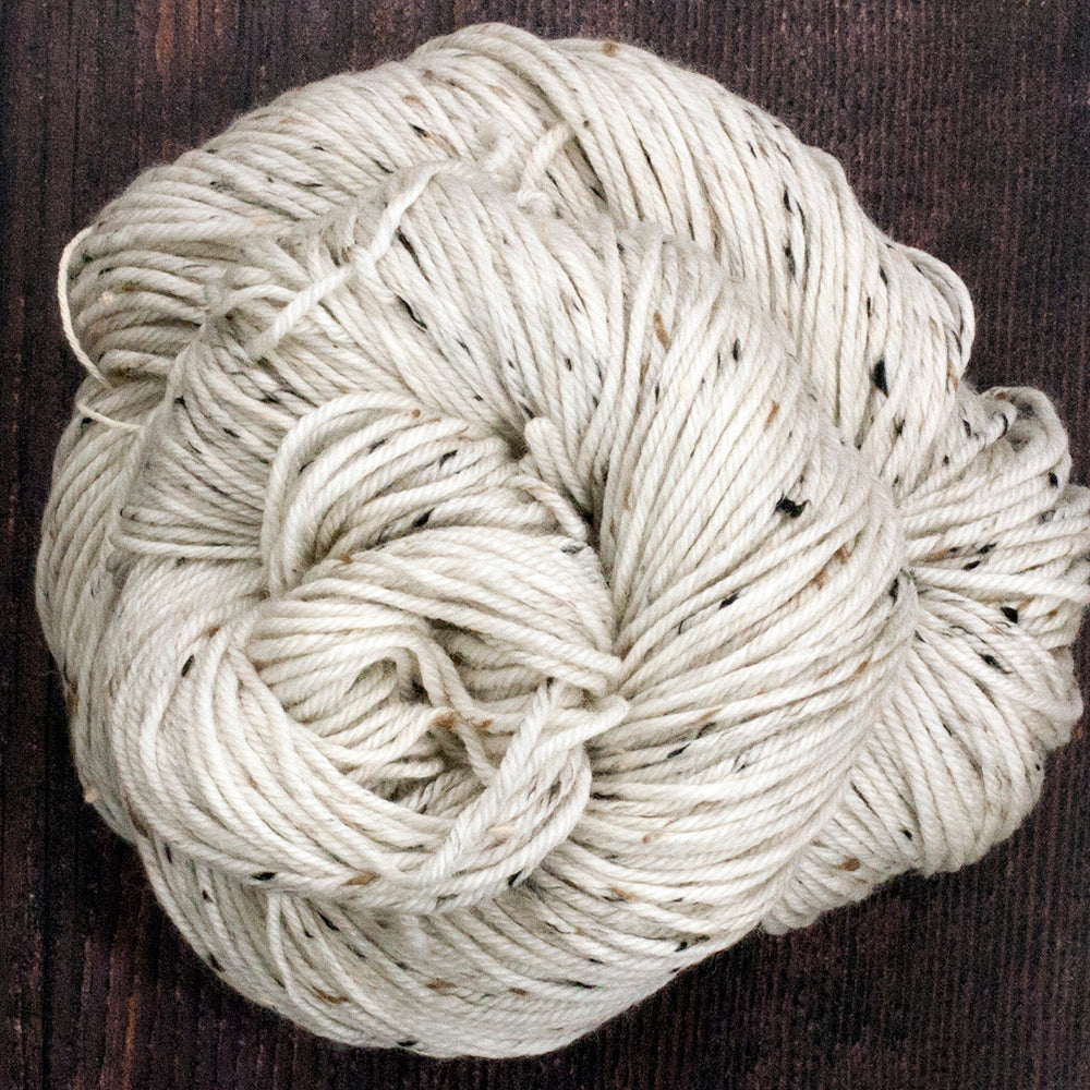 85% Superwash Merino 15% Donegal Nep, a dye-resistant polyamide fiber, lends the dark neutral color to this 4-Ply yarn.