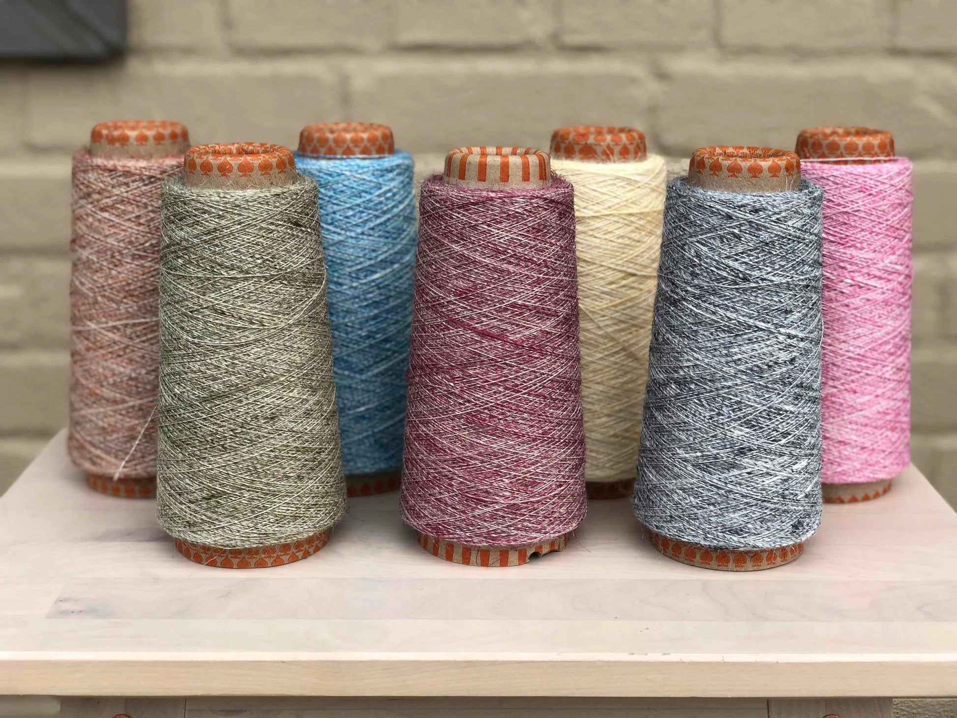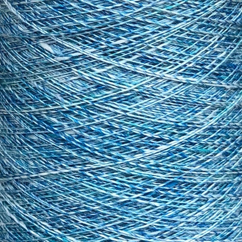 This beautiful multi-color yarn is a single ply made from combining died rayon with flax (either bleached or unbleached). You'll find the yarn to be slightly textured with thick and thin places as the rayon and linen twist together. It is not recommended for use as a warp yarn.