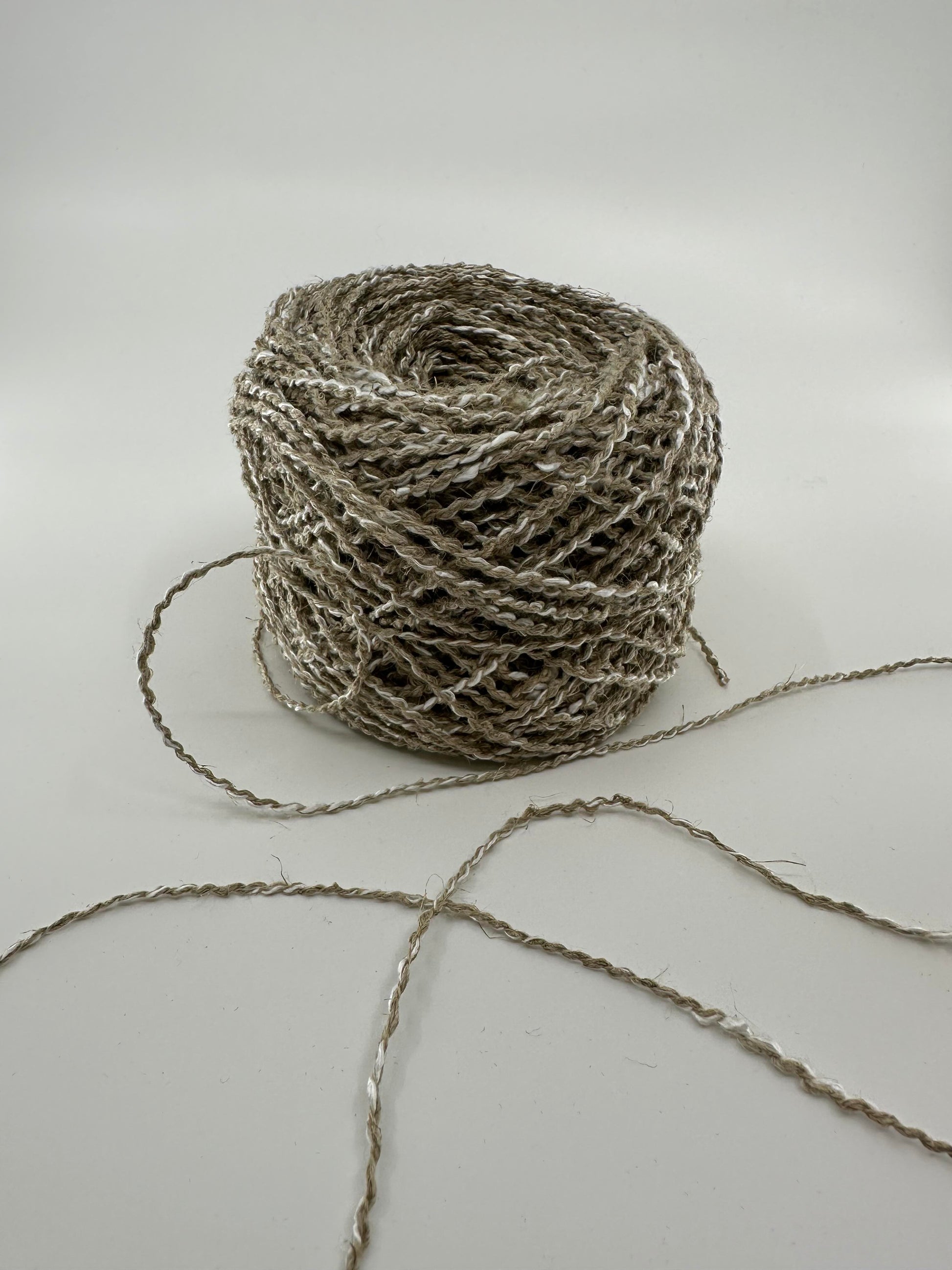 Natural colored linen boucle is available in both a small and large diameter yarn.