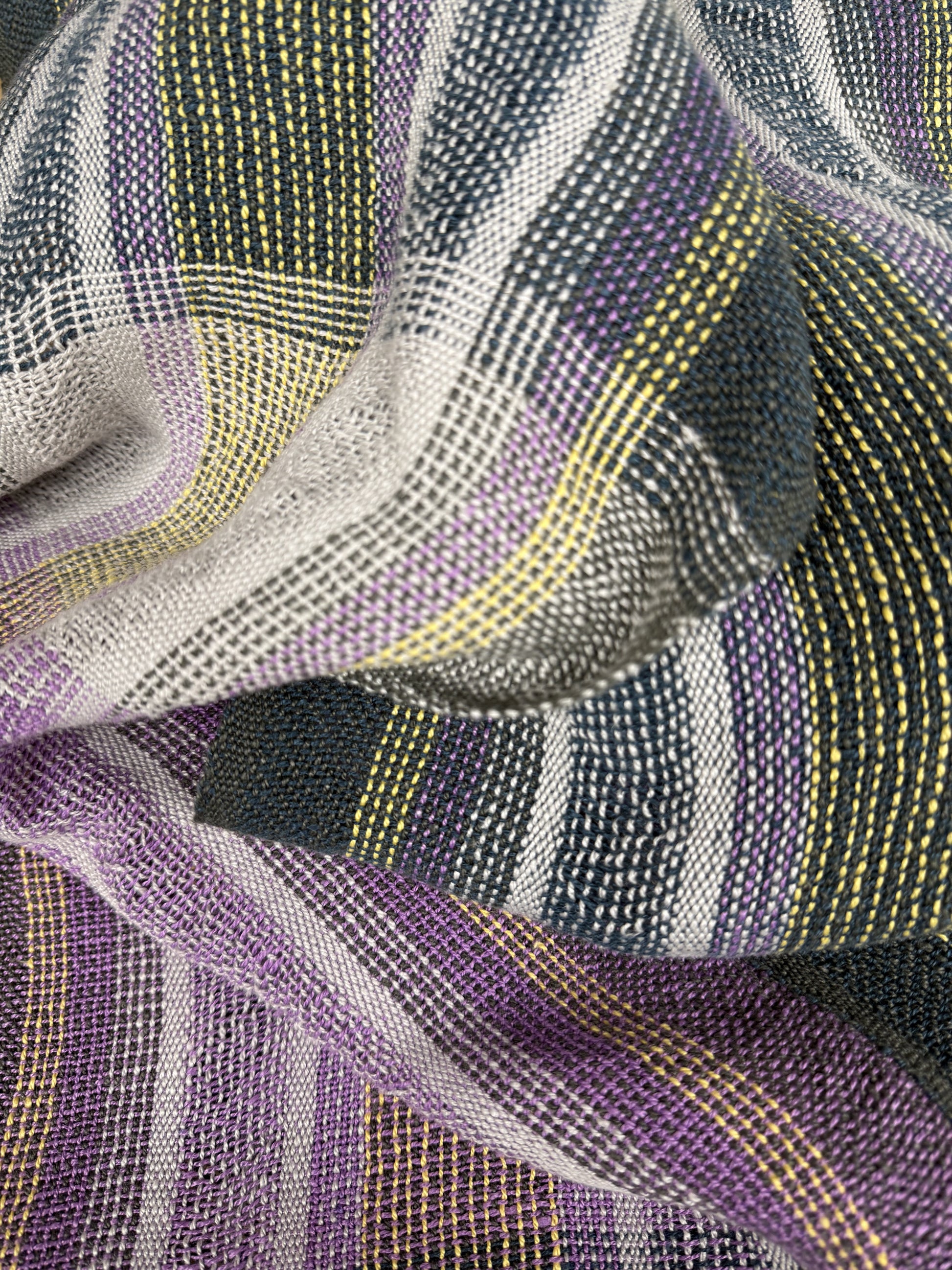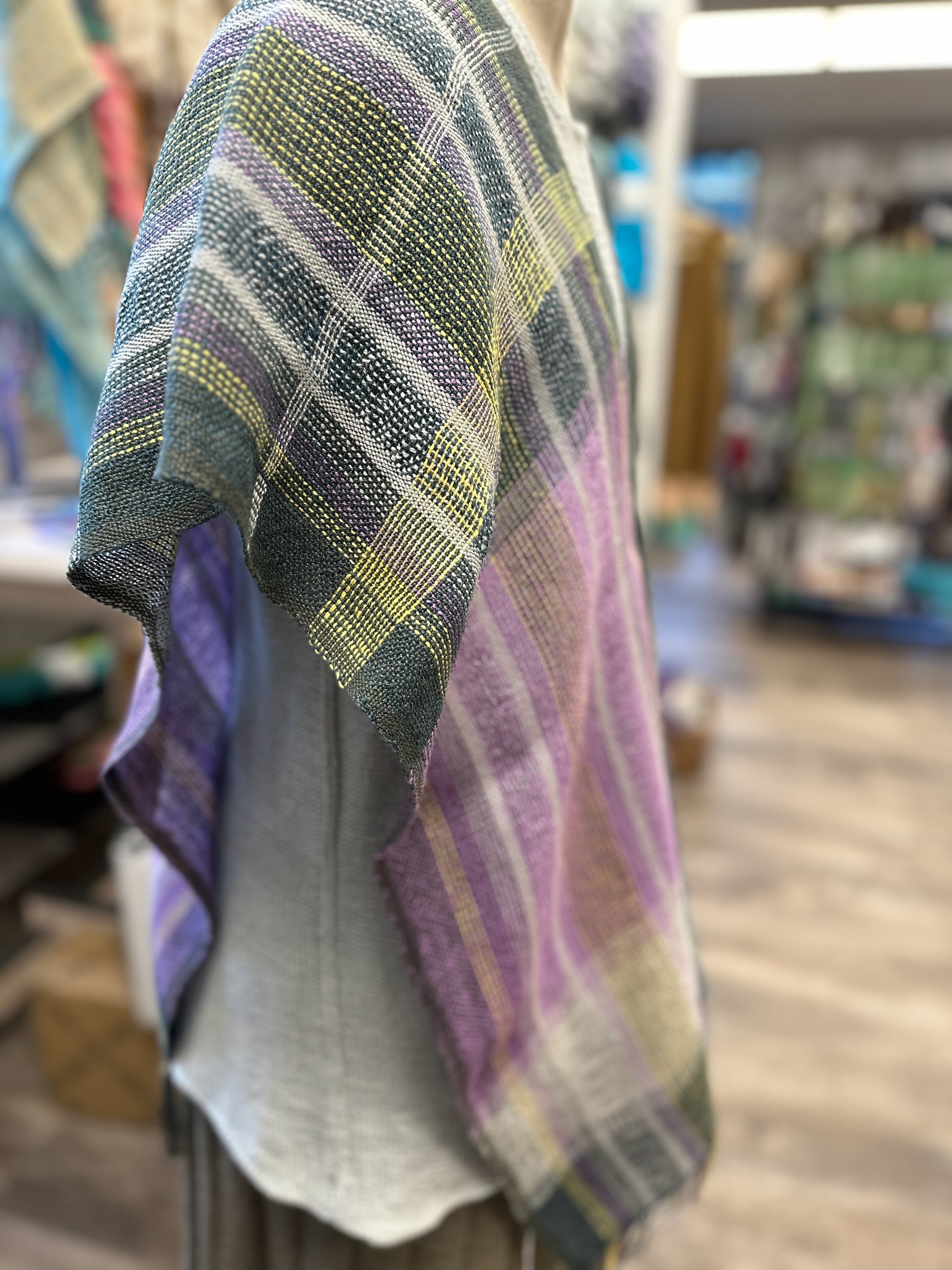 Weave two panels the same size, then with some simple stitching put them together as a Ruana or a Poncho. The weave structure is simple plain weave. The interest comes with the denting, which involves sleying the reed closely in sections, and wider in others. Machine wash and dry for softness. You'll love wearing this!