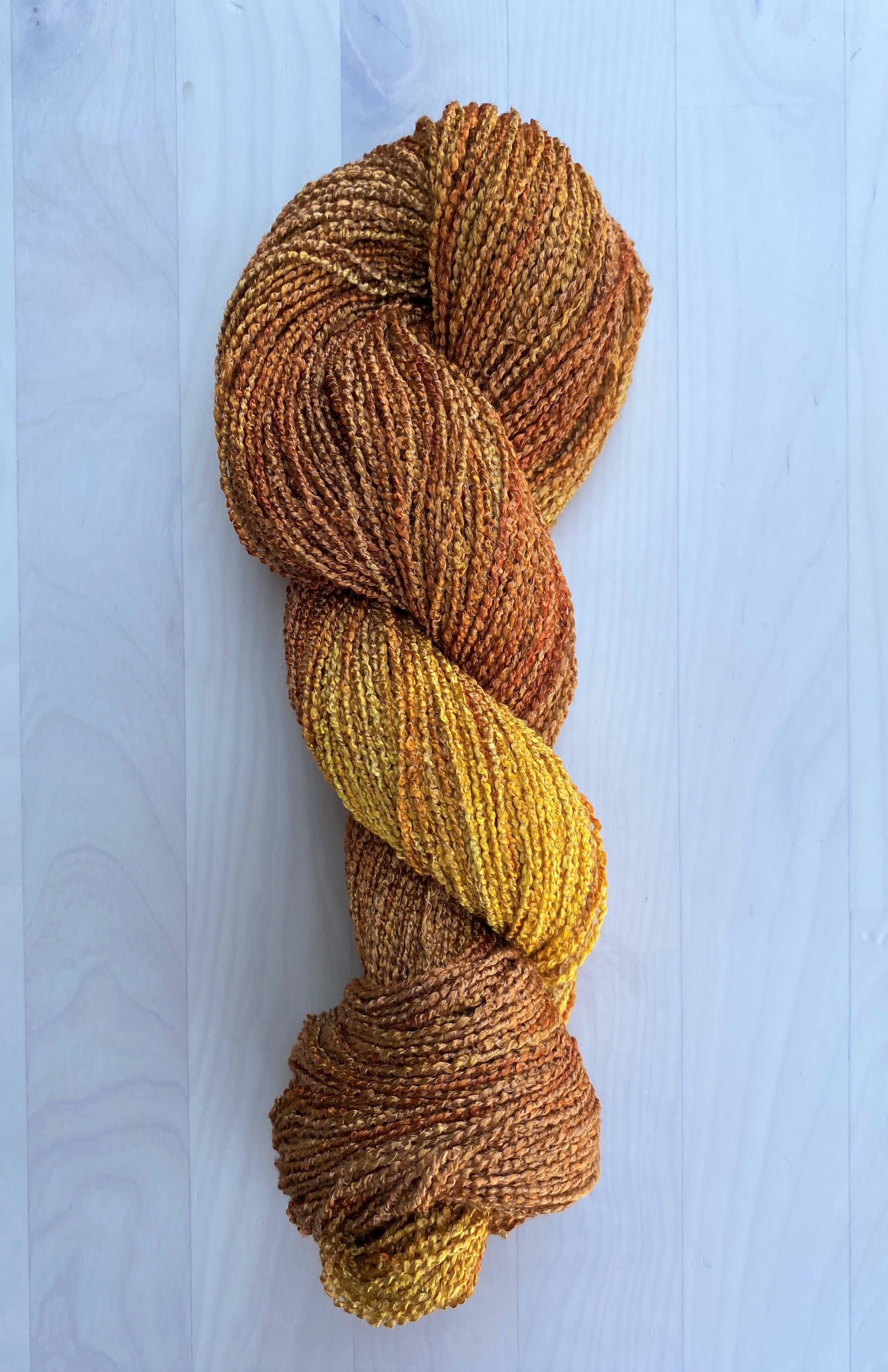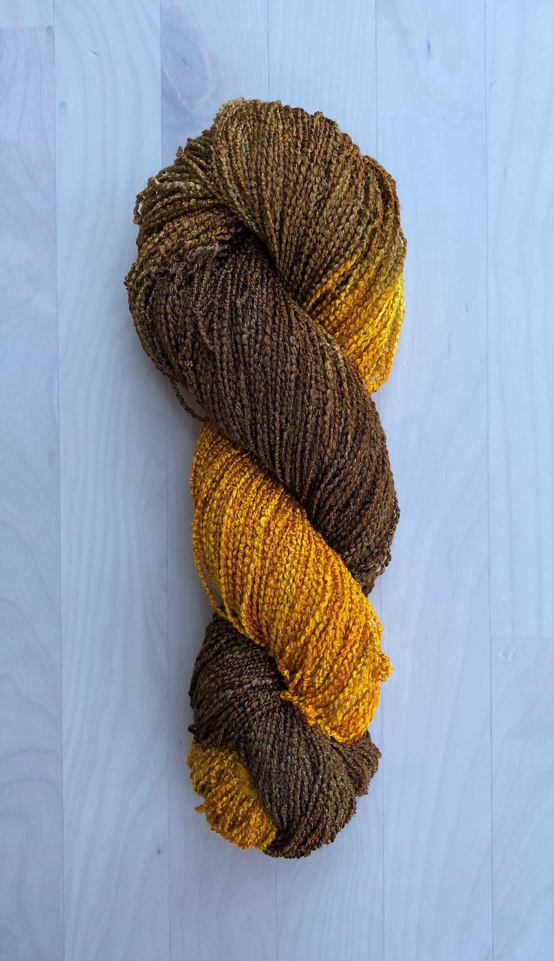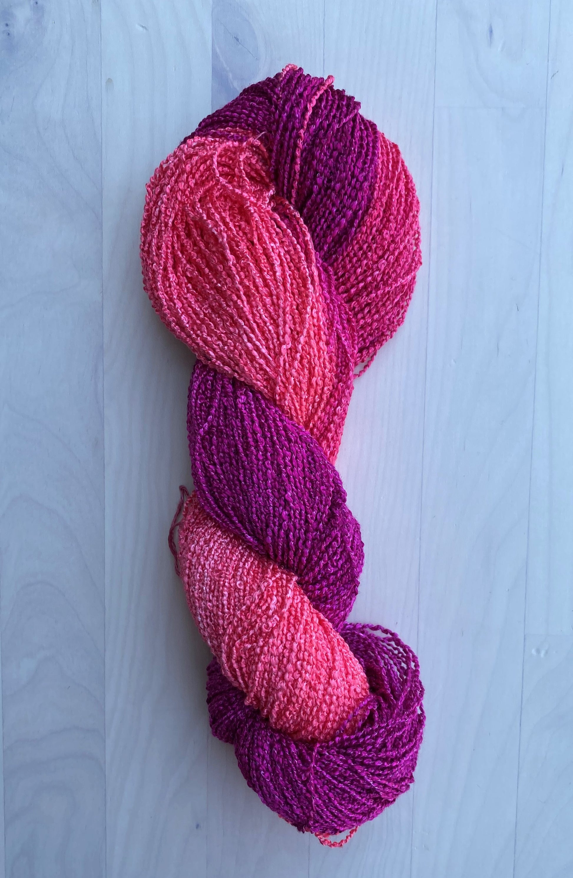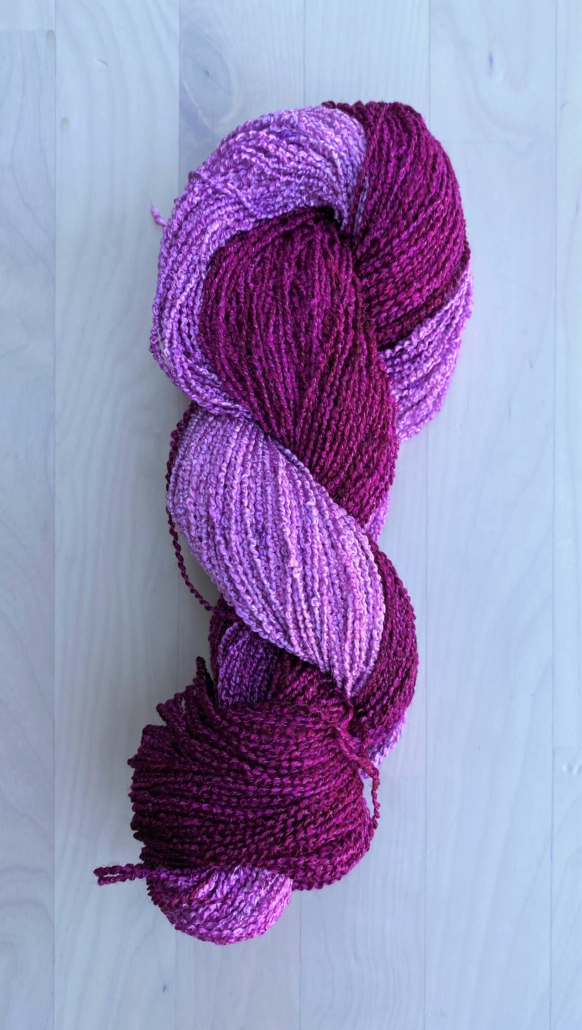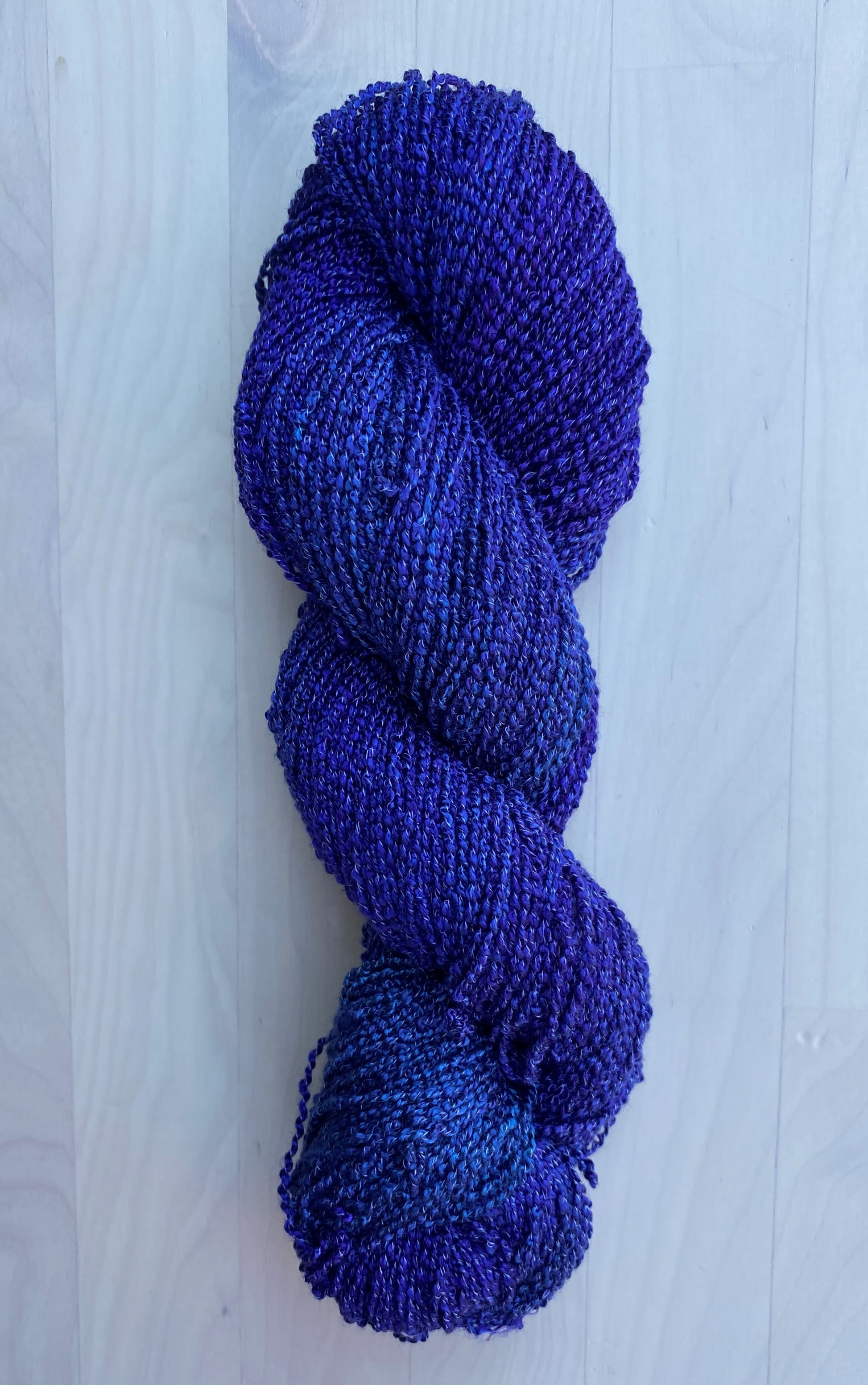This Rayon 1200 Boucle Hand Dyed yarn is a shiny, drapey yarn with a beautiful texture that are custom dyed. This yarn works well for weaving, knitting and crochet.