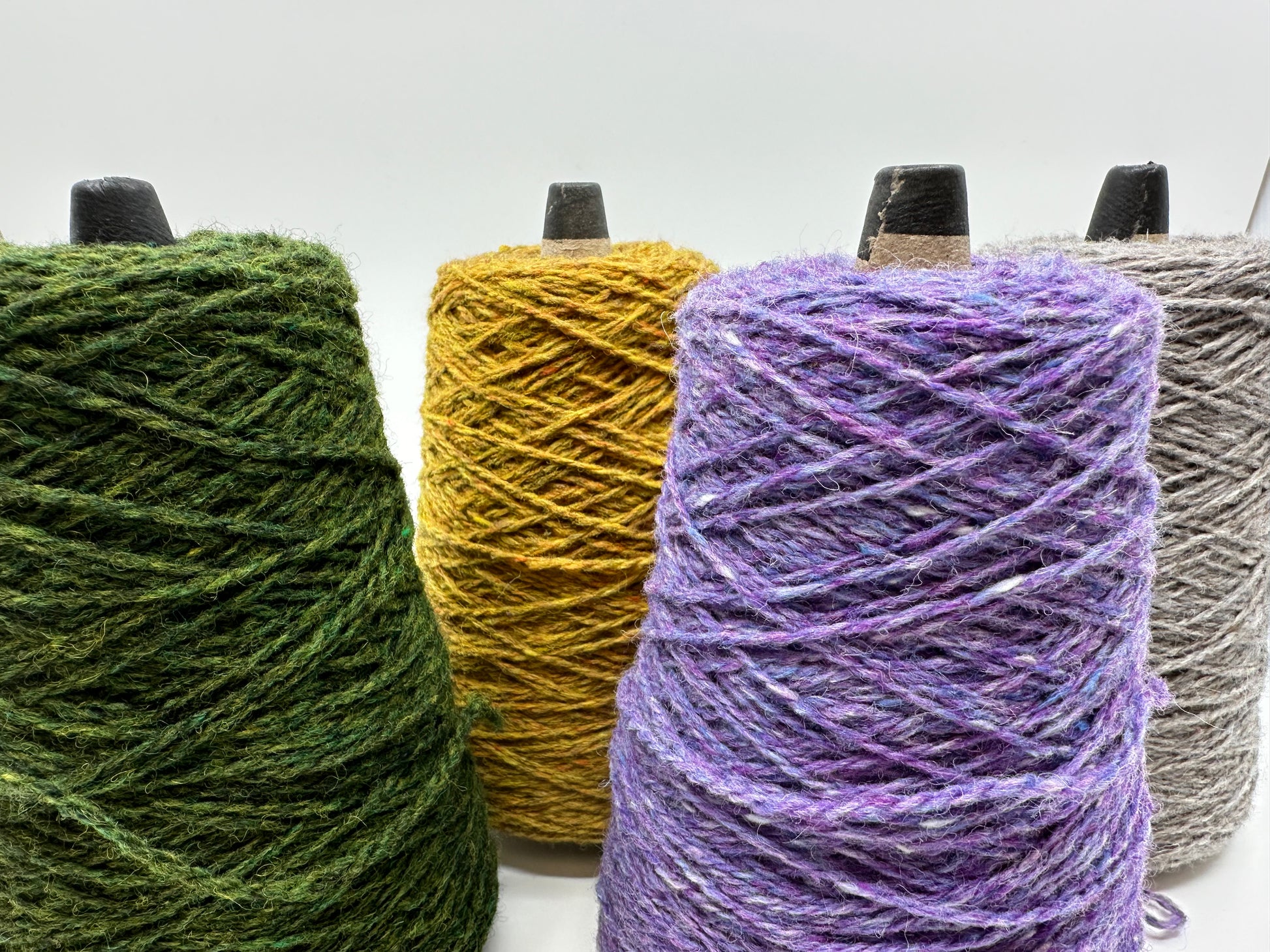Highland is available in 64 tweedy, heathered, woolen spun colors. This yarn is perfect for a cozy sweater, or a favorite pair of mitts. I also love to weave rugs with this yarn. The color choices are beautiful.