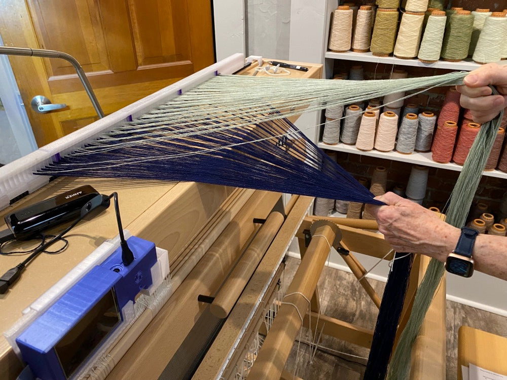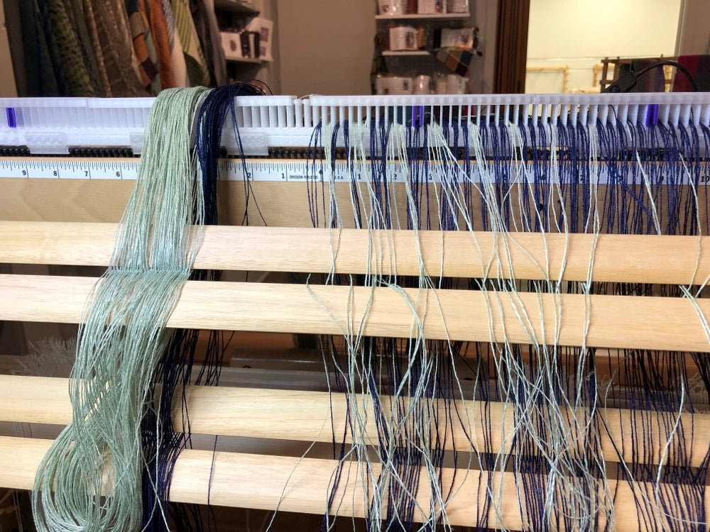 New - Support for Two Warp Chains with LoftyFiber Helping Hands. Select from two warp chains in any order as you spread the warp and thread your loom. Convenient for designs that require many frequent color changes as well as impromptu warp color decisions at the loom.