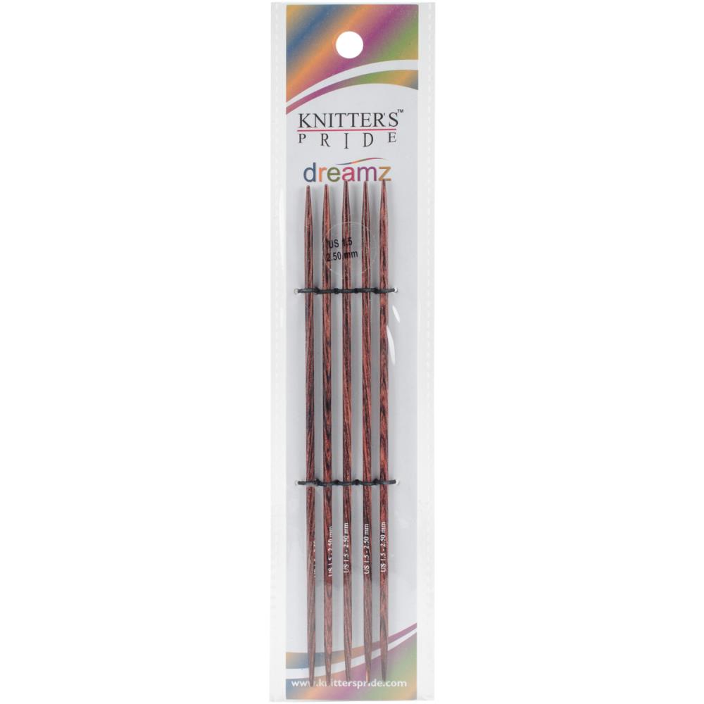 Knitter's Pride- 6" Dreamz Double Pointed Needles. Dreamz needles are lightweight strong, and flexible. The polished wood surface works effortlessly with every type of yarn. The points are perfect and flawlessly tapered- ideal for all yarns and every project. This package contains five 6 inch long double pointed needles in one size.