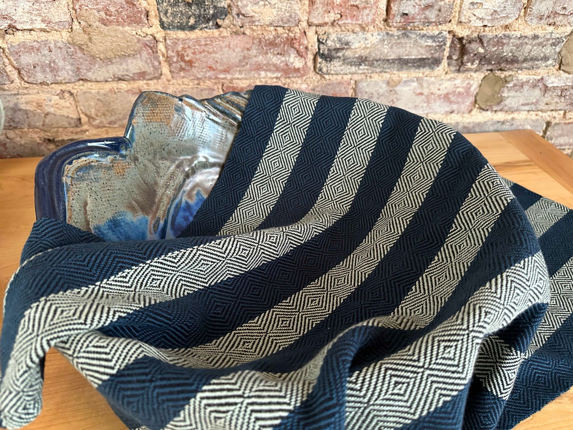Kit includes a printed pattern and download of the pattern PDF and WIF files; 8-ounces Color A, 8-ounces Color B, 8 ounces Color C in Lofty Cotton 8/2