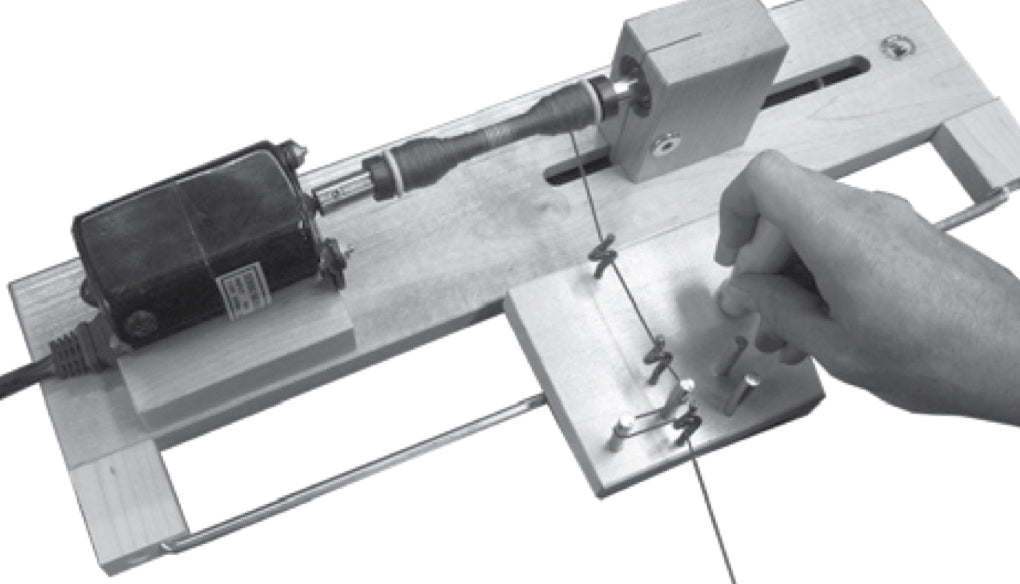 Holds both ends of bobbins, spools or pirns. Designed for bobbins, spools or pirns of any length between 2.75" to 8". This winder also works with the LoftyFiber 3D printed quills (they have a flare on the end).