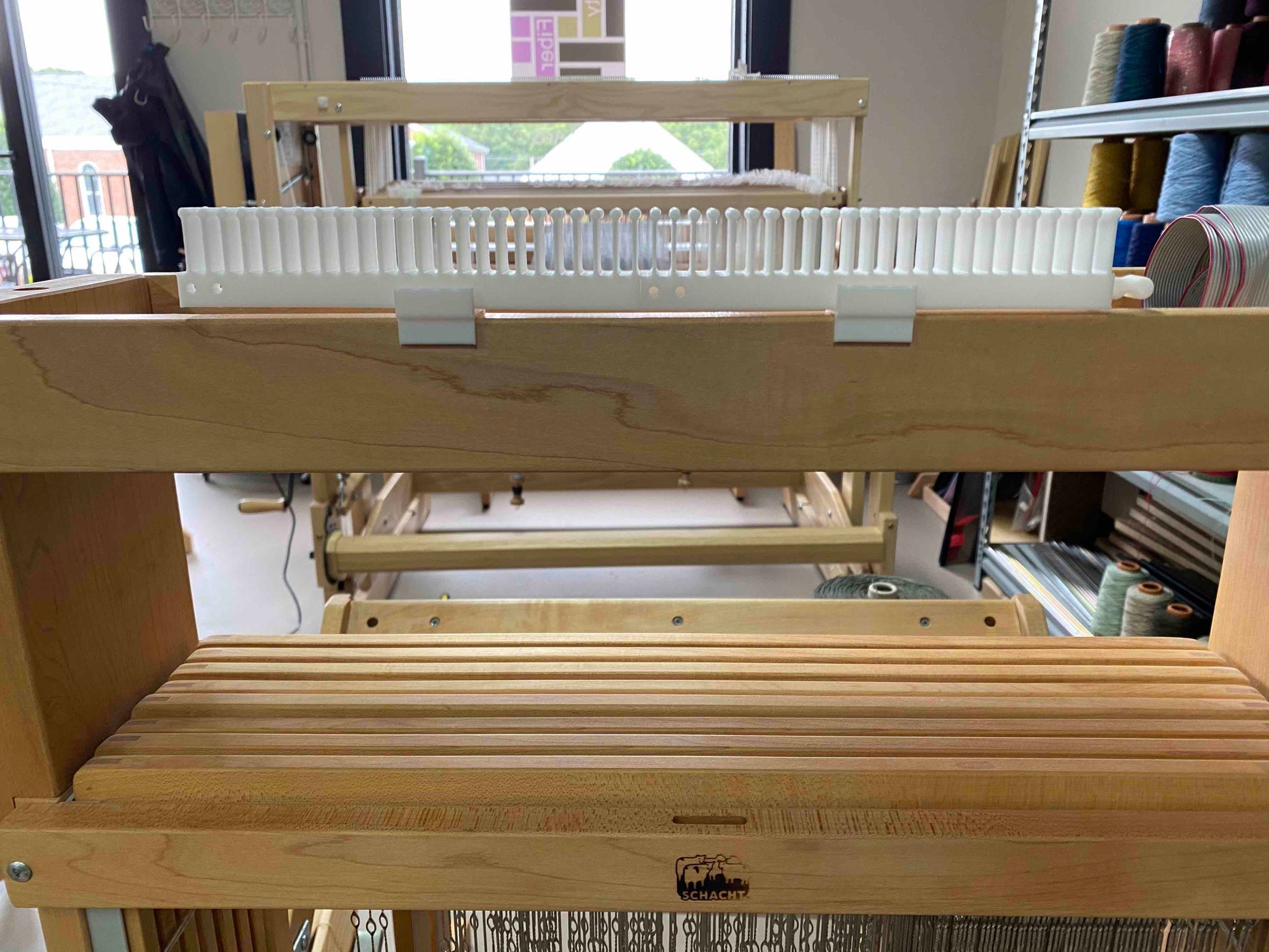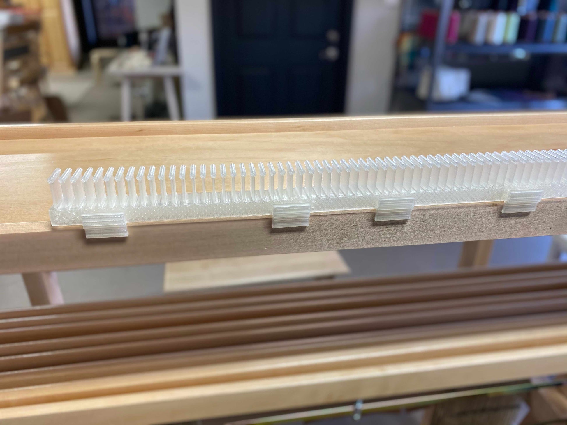 - On Louet looms, we have a clip that fits over top of the Louet built-in raddle. This is great for larger threads or dense warps on Louet looms. See this listing for Louet Looms.
