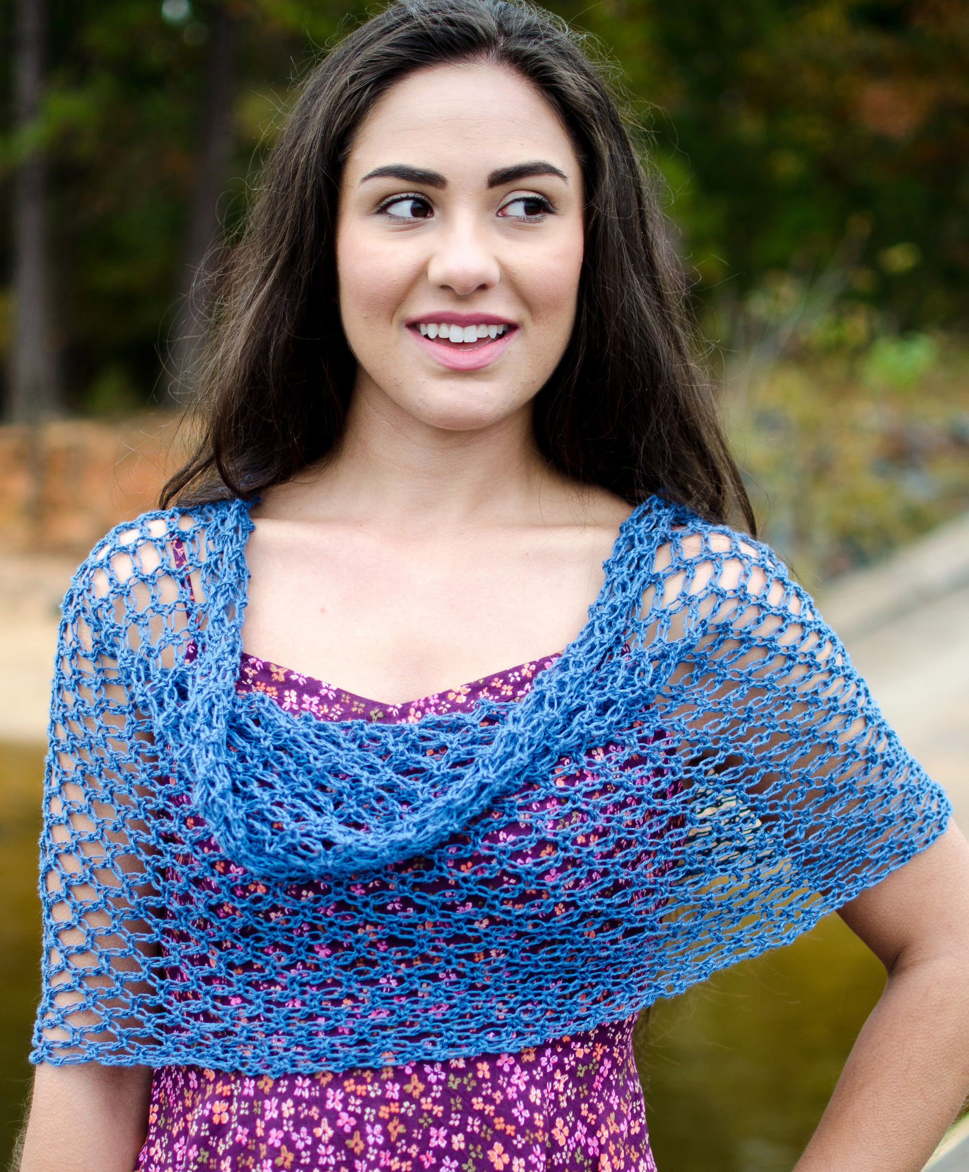 Made with simplicity and style, this accessory can be worn as both an elegant shrug for more formal settings or as a fashionable cowl for everyday. One skein of Louet Euroflax goes a long way using the easy-to-master Soloman’s Knot stitch. This lacey piece works up very quickly using a spiral, in-the-round construction with no seaming.