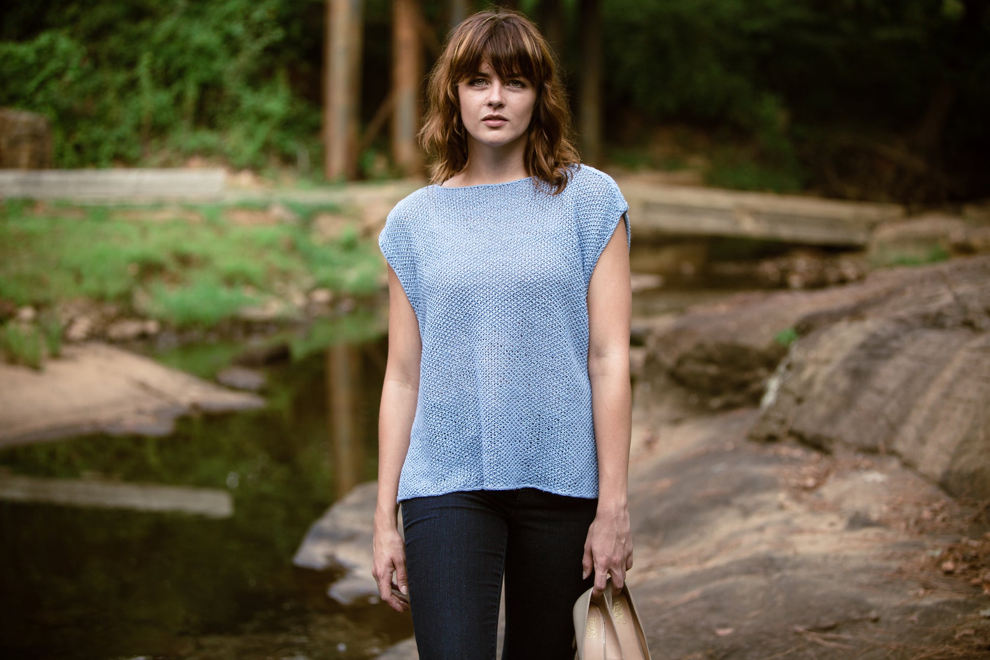 The Renata Top is a textured linen shell with minimal shaping and an i-cord edging. Knit in two pieces and then seamed, this garment will relax and stretch out slightly after blocking. It’s perfect for either dressing up or dressing down!Shown in size 39 1/2" on 34" bust with 5 1/2" positive ease.