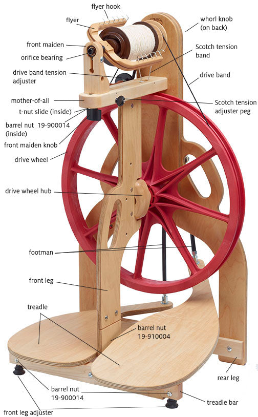 Included with each Schacht Ladybug Spinning Wheel are a poly drive band, threading hook, three travel bobbins, medium and fast whorls, and double drive band. Each Ladybug Spinning Wheel is unique—somewhere on your wheel is your very own Ladybug pal.