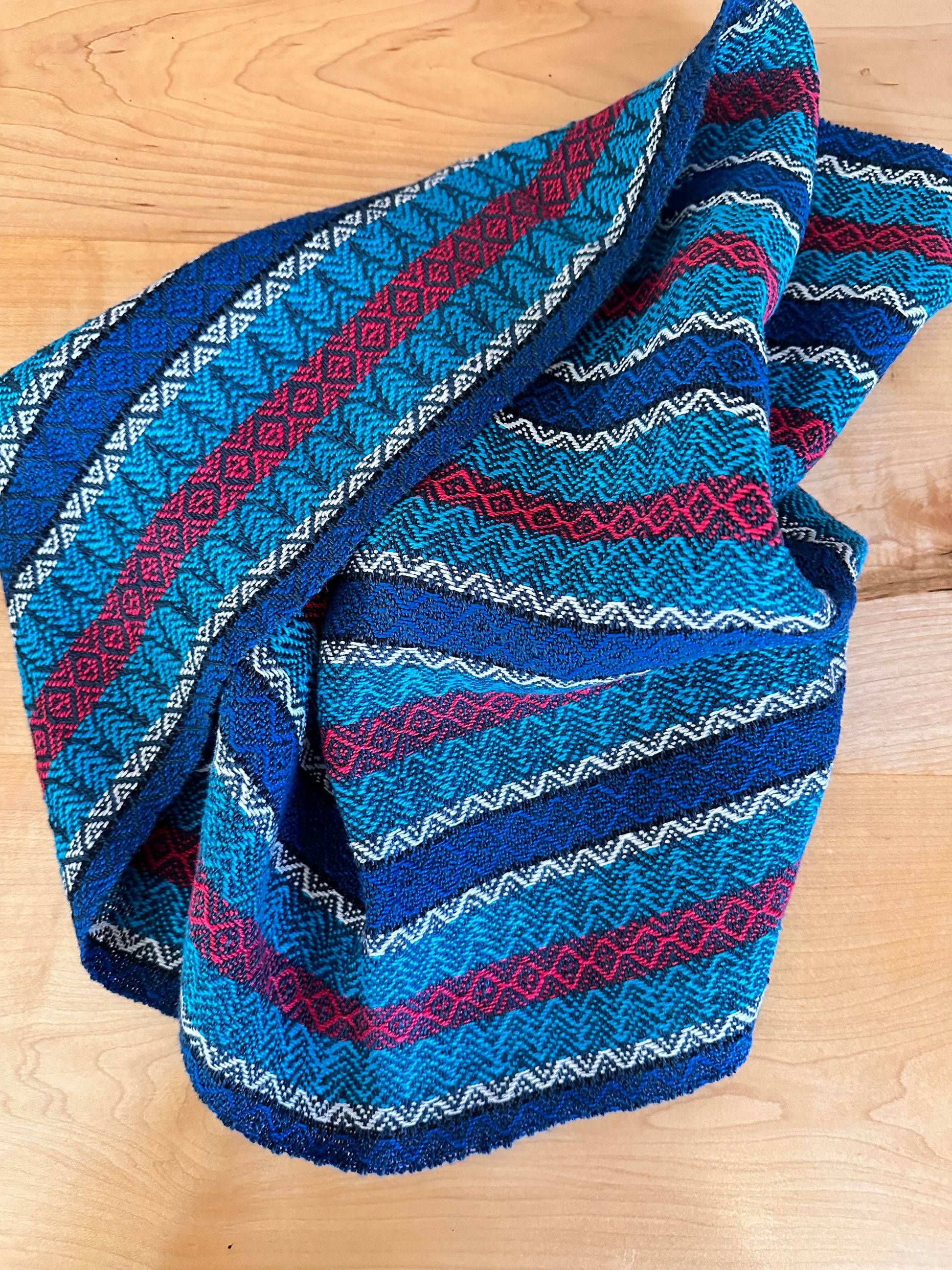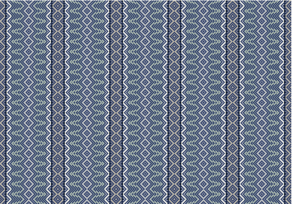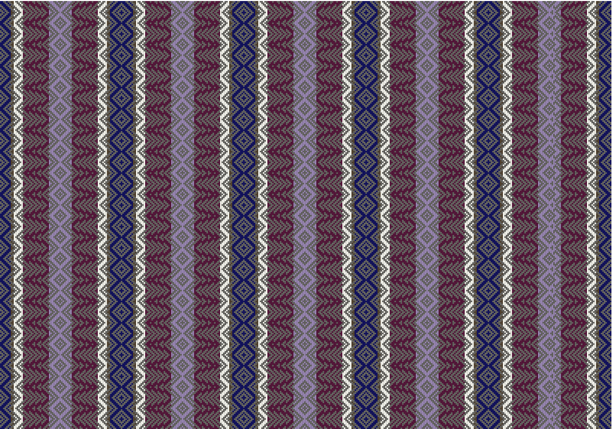 YARN: Warp: Euroflax 14/2 Color A 308 yds, Color B 80 yds, Color C 240 yds, Color D 680 yds, Color E 300 yds